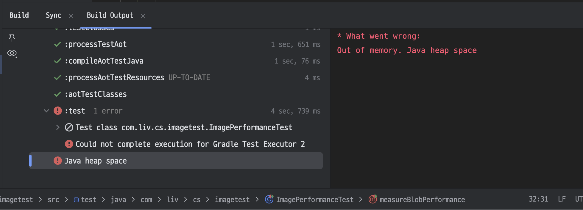 Blob 타입으로 저장한 바이너리 이미지 목록을 조회하면 OOM(Out Of Memory) 에러가 발생합니다. 테스트 설계에서 파일의 크기는 각 1MB 였습니다. 목록조회로 호출할 경우 최소 1MB × 100개의 이미지 = 100MB 가 호출됩니다. 저장된 바이너리 데이터가 자바 객체로 변환되는 과정에서 2-3배의 데이터가 더 필요하게 됩니다. 이러한 이유로 JVM에 할당된 Heap Memory가 감당하지 못하고 OOM 에러를 발생시키게 된 것입니다.