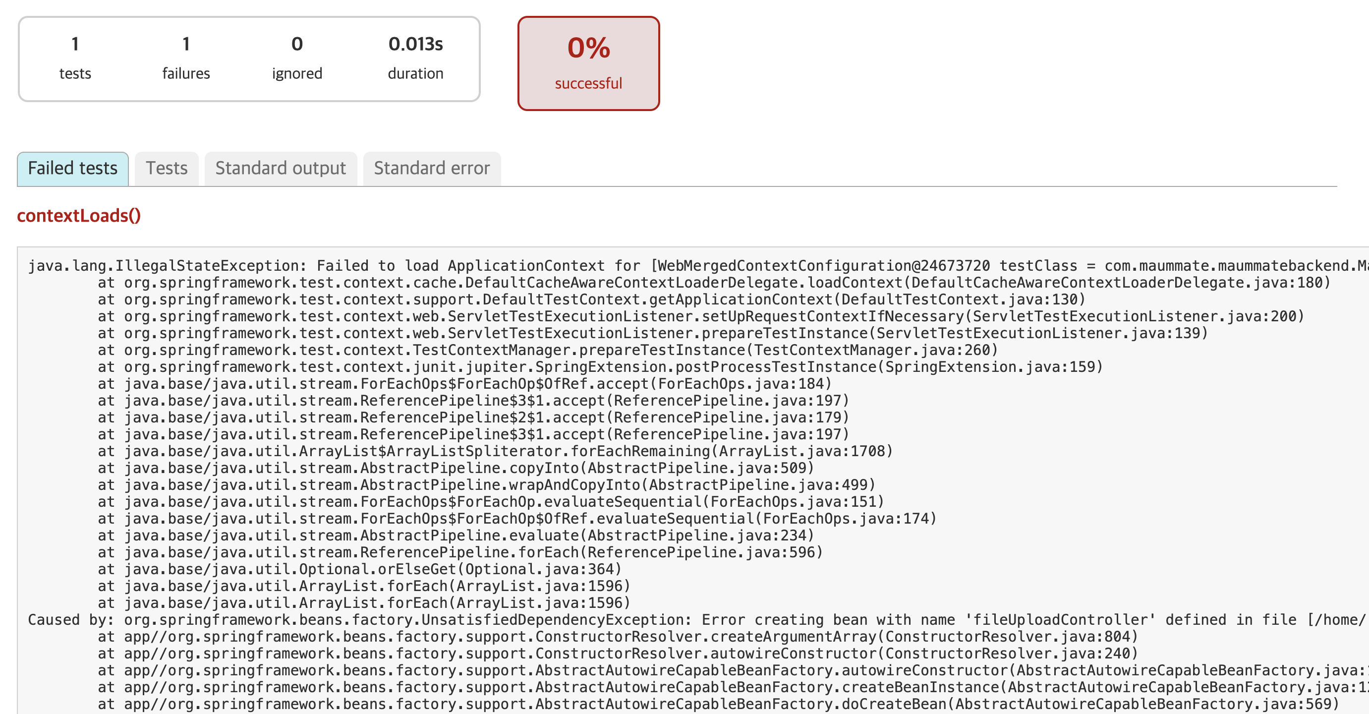 Spring Boot CI 빌드 에러 해결: 테스트 코드가 없는데도 왜 빈 생성에 실패할까?